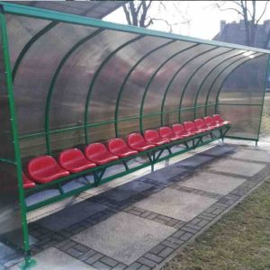Wiaty stadionowe naszej produkcji już od wielu lat gwarantują schronienie szeregom najlepszych zawodników, stwarzając przestrzeń, gdzie możliwy jest relaks i strategiczna dyskusja pomiędzy graczami a trenerem. Ich materiał wykonania stanowią zamknięte profile z wysokogatunkowej stali, które przed oddziaływaniem warunków pogodowych zabezpiecza profesjonalnie nałożona warstwa farby antykorozyjnej.